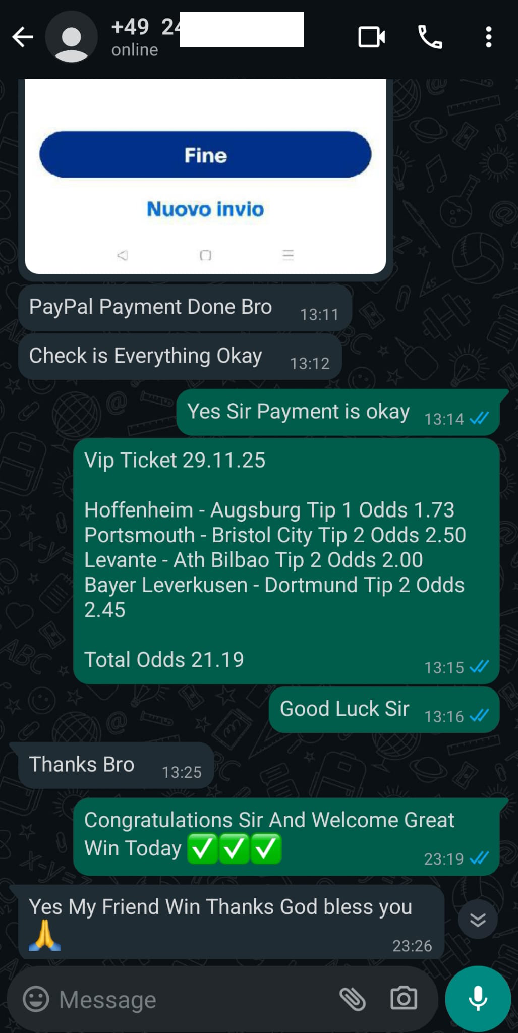 | 21.11.2025 | Mainz – Hoffenheim | X | 3.50 | 1:1 | ||||